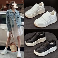 小白鞋女2025秋季新款时尚休闲单鞋百搭学生厚底松糕鞋内增高板鞋