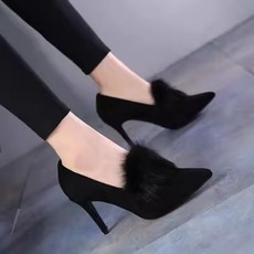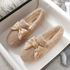 34码33小码女鞋2025超火毛毛鞋外穿新款软底豆豆鞋粗跟加绒单鞋
