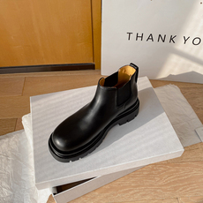 一脚蹬真皮厚底内增高切尔西靴马丁靴小码短靴女潮31 32 33及裸靴