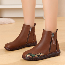 民族风妈妈鞋真皮软底大码短靴加厚羊毛棉靴秋冬31平底女靴小码33