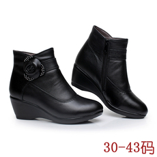 冬季棉鞋小码31 32 33真皮坡跟中老年妈妈短靴保暖棉靴子加绒女鞋