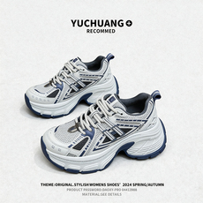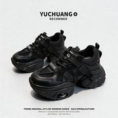 2025春季新款厚底增高真皮板鞋女7cm小个子休闲熊猫小白鞋小码33