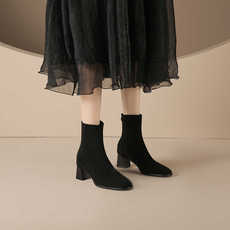 小码女靴313233后拉链短筒靴高跟加绒棉靴小脚34码方头瘦瘦靴秋冬