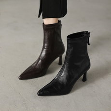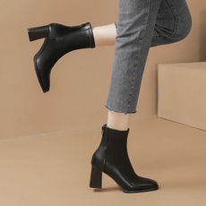 小码短靴女2024秋冬新款31 32 33真皮高跟尖头气质加绒保暖女靴子
