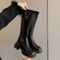 秋冬骑士靴长靴子皮面女靴大小码33 40 41 42 43粗跟女鞋超高跟