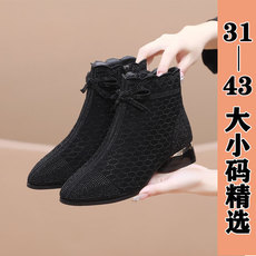 小码及裸靴31 32 33尖头平底短靴女大码黑色软底百搭马丁靴41-43