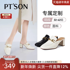 [定制小码32-33/大码40-42]百田森真皮穆勒拖鞋女粗跟大码女鞋