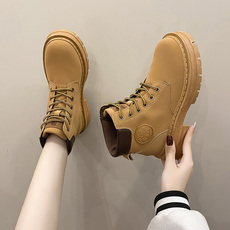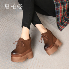 秋冬季真皮内增高12cm厚底坡跟松糕小码加绒33高帮中筒马丁靴女鞋