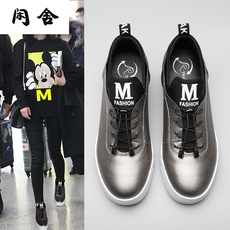 2025春秋季新款12cm内增高女鞋真皮水钻百搭时尚小码33运动休闲鞋