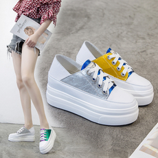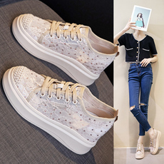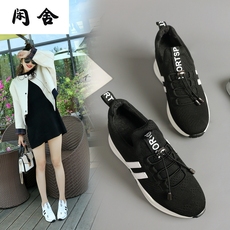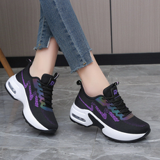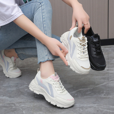 春季隐形内增高6CM运动鞋女33小码34厚底气垫女鞋网面休闲旅游鞋