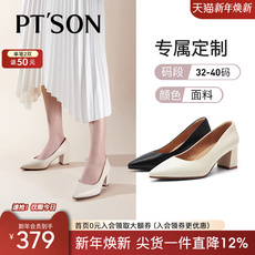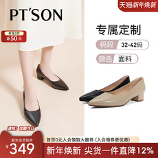 [定制小码33/大码40]百田森新款真皮尖头工作鞋单鞋粗跟大码女鞋