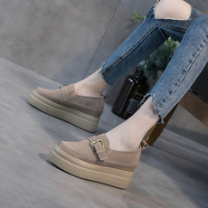 内增高女鞋子黑色小码31 32 33厚底坡跟百搭休闲鞋春秋真皮松糕鞋