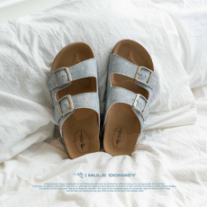 真皮凉拖鞋女夏季外穿2025新款厚底沙滩凉鞋法式踩屎感面包一字拖