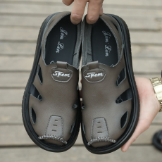 头层牛皮透气休闲鞋男夏季凉皮鞋真皮凉鞋男防滑镂空爸爸鞋子外翻