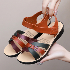 2025春夏新款复古妈妈鞋防滑女真皮魔术贴单鞋中跟玛丽珍凉鞋透气