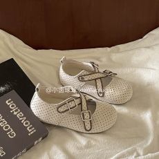 2025夏季芭蕾舞鞋女玛丽珍鞋女平底渔网镂空单鞋凉鞋羊皮透气软底