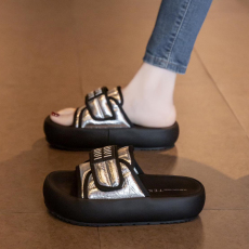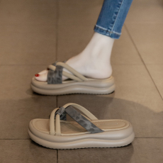 法式绝美厚底松糕凉拖鞋女夏季外穿高级感2025新款配裙子沙滩凉鞋