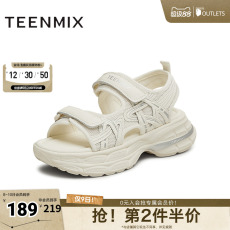 天美意2025新款魔术贴运动休闲百搭增高女老爹凉鞋KD082BL5