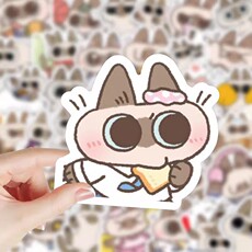 小豆泥可爱暹罗猫猫贴纸ins封口贴不干胶标签儿童卡通卷卷手工贴