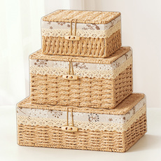 桌面收纳盒带盖茶几零食首饰小杂物整理盒藤编织收纳筐内衣储物盒