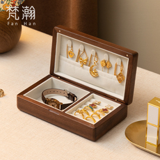 胡桃木首饰盒小型高档精致礼盒耳环耳钉耳饰项链手串饰品收纳盒