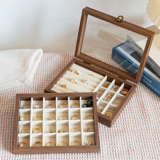 黑胡桃木纹高档精致便携首饰盒小型手饰品戒指项链耳钉耳饰收纳盒