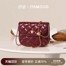妙迪红色包包新款马鞍包小香风真皮菱格链条包洋气单肩斜挎包女款