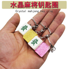 水晶麻将小扣创意男士腰挂钥匙扣挂件汽车挂饰锁匙钥匙圈环钥匙链