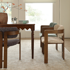 法式复古餐椅中古风扶手椅靠背茶椅家用麻将椅白蜡木布艺实木椅子
