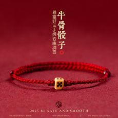 天然牛骨骰子小麻将红绳手链女手工编织转运珠情侣本命年手绳男款