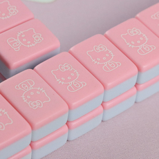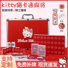 手搓家用麻将牌可爱小猫红黑色可爱凯蒂猫卡通麻将中大号定制麻将