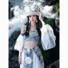 新款旅拍苗疆少女蜡染长裙写真服装少数民族摄影苗族服饰写真套装
