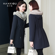 派克服女水貂内胆可拆卸冬季新款海宁皮草尼克服外套中长款连帽