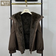 黛玛诗休闲气质尼克服2025新款冬季水貂毛内胆连帽中长外套女高端