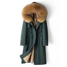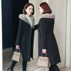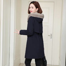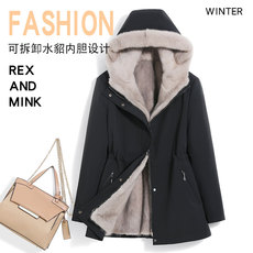 新款保暖派克服女水貂绒内胆连帽大衣大衣可脱卸尼克服中长款皮草