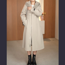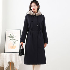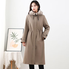 黛玛诗2025新款冬季水貂毛内胆尼克服大衣女休闲外套中长款连帽