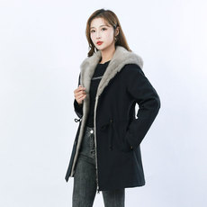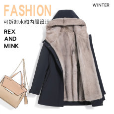 海宁可拆卸内胆派克服女水貂毛中长款尼克服加厚拼貂皮草外套冬款