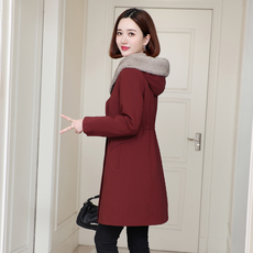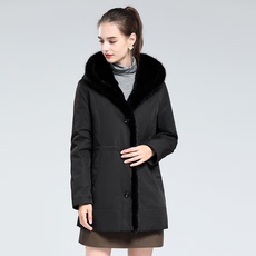 简爱诺冬季水貂毛皮可拆卸内胆中长款连帽保暖尼克服女J2160165NK