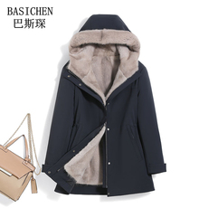 派克服女冬季新款修身水貂内胆可拆卸海宁皮草尼克服外套中长款