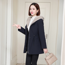 黛玛诗高端水貂毛连帽尼克服秋冬新款内胆可拆卸保暖外套女中长款