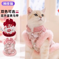 新年款猫咪衣服冬装保暖马甲宠物唐装背心无毛猫过年德文猫居家服