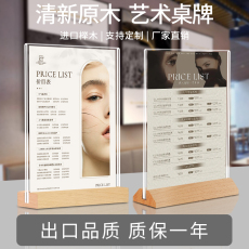 亚克力价格展示牌A4立牌桌牌高档木质底座台卡台签架奶茶店餐桌桌面摆台双面透明台牌定制菜单价目表广告牌子