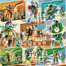 国外山海经五帝融合怪大boos乐LE高合体动物积木拼装模型盒装礼物
