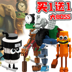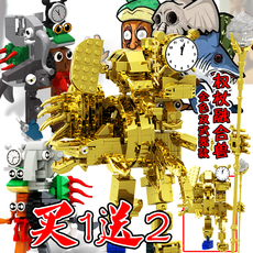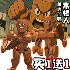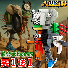 外国AI山海经融合怪boss乐le高木棍人肌肉鹿哥儿童拼装积木玩具男
