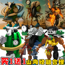 外国山海经五帝王神兽融合拼装玩具奶牛木棍人玩偶手办男孩玩具