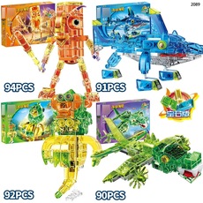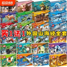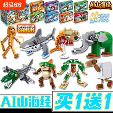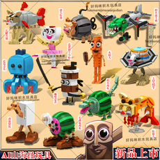 美国外AI山海经积木全套鳄鱼轰炸机鲨鱼抽象拼装玩具男孩礼物潮玩