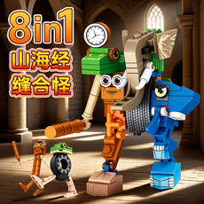 融合怪山海经全套AI拼装木棍人积木炸弹鳄鲨咖啡机甲手办儿童玩具