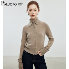 帕罗高翻领100%山羊绒衫女士开衫休闲百搭厚款单排扣25新款毛衣