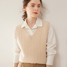 25马甲新款叠衬衫V领背心山羊绒秋冬麻花外穿针织毛衣外穿无袖女