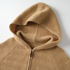 五针加厚带兜提花拉链帽衫女100纯山羊绒衫女款针织外套打底毛衣